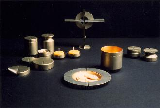Sortiment liturgischer Gefässe.Neusilber.Wettbewerb Diözese Trier 1997.